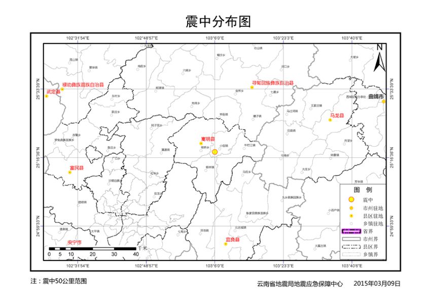据中国地震台网中心测定,北京时间2015年3月9日17时59分42秒,云南省昆明市嵩明县(北纬25....