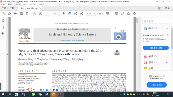 云南省365bet开户注册_bet体育365官网安全吗_0365cc彩票APP官方版下载青年职工彭关灵学术论文“Precursory tidal triggering and b value variation before the 2011 Mw5.1 and 5.0 Tengchong, China earthquakes”在地球科学顶级期刊“Earth and Planetary Science Letters”上发表。彭关灵为第一作者(兼通讯作者),合作者包括日本产业技术综合研究所雷兴林,云南省365bet开户注册_bet体育365官网安全吗_0365cc彩票APP官方版下载王光明、蒋飞蕊。  “Earth and Planetary Science Letters”(中文名:《地球与行星科学通讯》)是全球地球科学领域的顶级期刊,是国际82种自然指数期刊之一,2020年以来影响因子为5.255,ESI论文地学类排名第5。 作者通过深入研究,发现腾冲地区潮汐应力与地震的发生在统计上存在显着的相关性,且2011年腾冲Mw5.1、Mw5.0地震前两年左右,这种相关性呈趋势增高。其中,Schuster谱显示,两个峰值仅出现在与潮汐周期相关的半日潮和一日潮。作者的发现提供了一个大陆背景下地震前潮汐触发的典型案例。另外,应力状态可以使用Gutenberg–Richter 定律b值来推断,该值表征了小地震和大地震之间的相对比例,并与差应力负相关。该地区b值的时序图显示,主震前保持长期的低值,同时短期内又有一个显着的下降。低Schuster概率值与低b值的一致性表明地壳介质接近临界状态,使其对外部扰动更加敏感。ETAS模型结果表明,2011年腾冲系列地震活动不仅受到级联地震触发的影响,而且显着地受到外部应力的扰动。根据Schuster检验、b值、ETAS模型和其他证据的综合结果,研究认为,当断层处于接近临界应力状态时,地震的潮汐触发成为可能,地热流体可能在触发机制中发挥重要作用。  彭关灵,男,汉族,硕士研究生,工程师,1986年生,2015年6月毕业于成都理工大学地质工程专业,同年就职于云南省365bet开户注册_bet体育365官网安全吗_0365cc彩票APP官方版下载,一直致力于地震预测预报研究工作。 论文信息如下: Title:Precursory tidal triggering and b value variation before the 2011 Mw 5.1 and 5.0 Tengchong, China earthquakes Authors: Guanling Peng, Xinglin Lei, Guangming Wang, and Feirui Jiang Doi: https://doi.org/10.1016/j.epsl.2021.117167 |